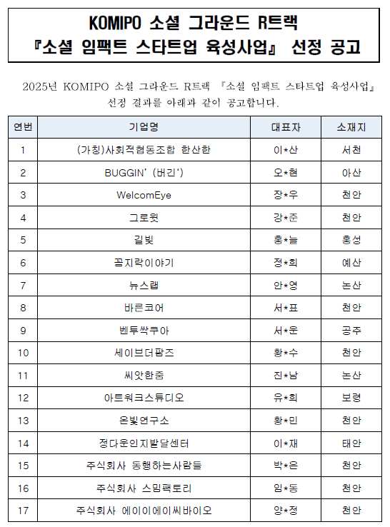 KOMIPO 소셜그라운드 R트랙 「소셜 임팩트 스타트업 육성사업」 선정 공고.pdf